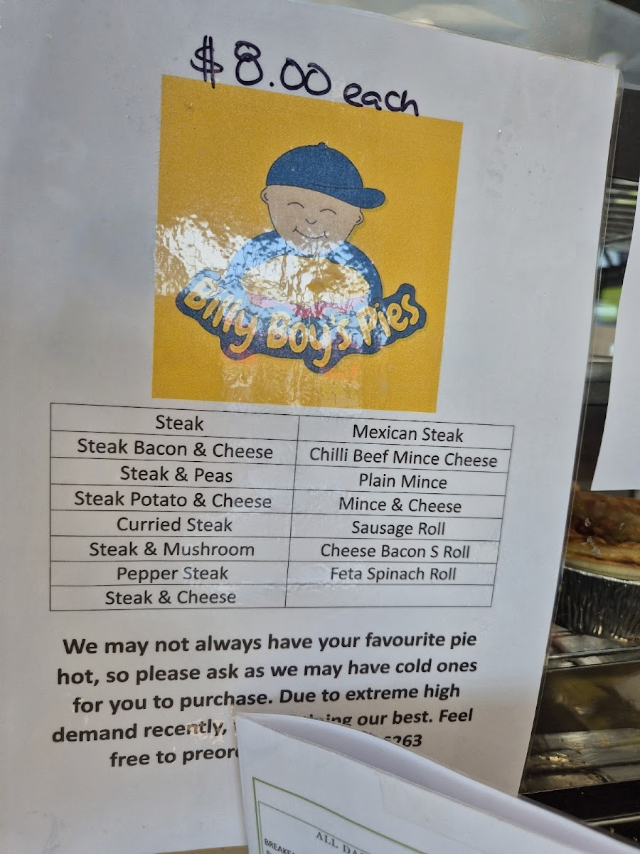 For those seeking a classic pie experience, the extensive lineup features crowd favorites like Steak & Peas, Curried Steak, and the standout Chilli Beef Mince Cheese. The star of the show just might be the Pepper Steak Pie, praised by customers like Peter Huntingdon who rated it a resounding 10/10. He relished the chunky filling within an impressively sized pie, declaring each bite to be filled with rich, savory flavors.